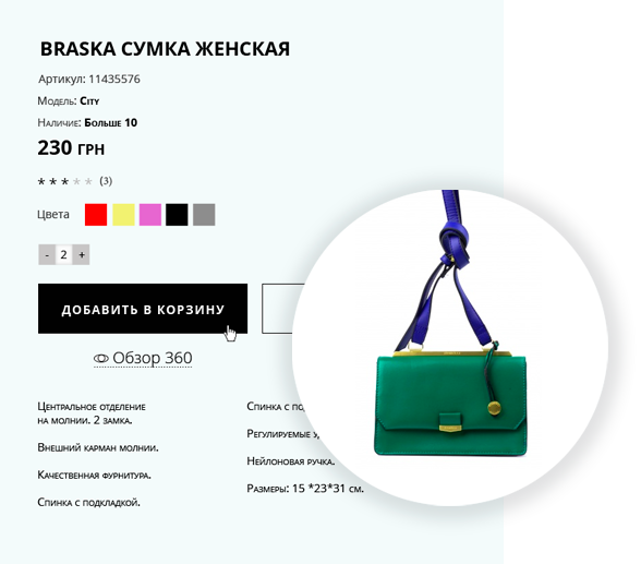 Разом з цим на сторінці будуть розміщені «пов'язані» продукти, вкладки, опис.